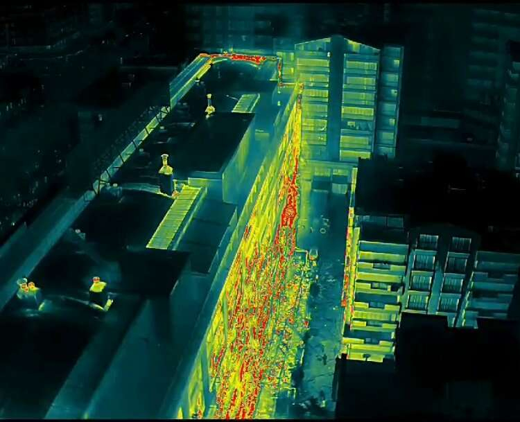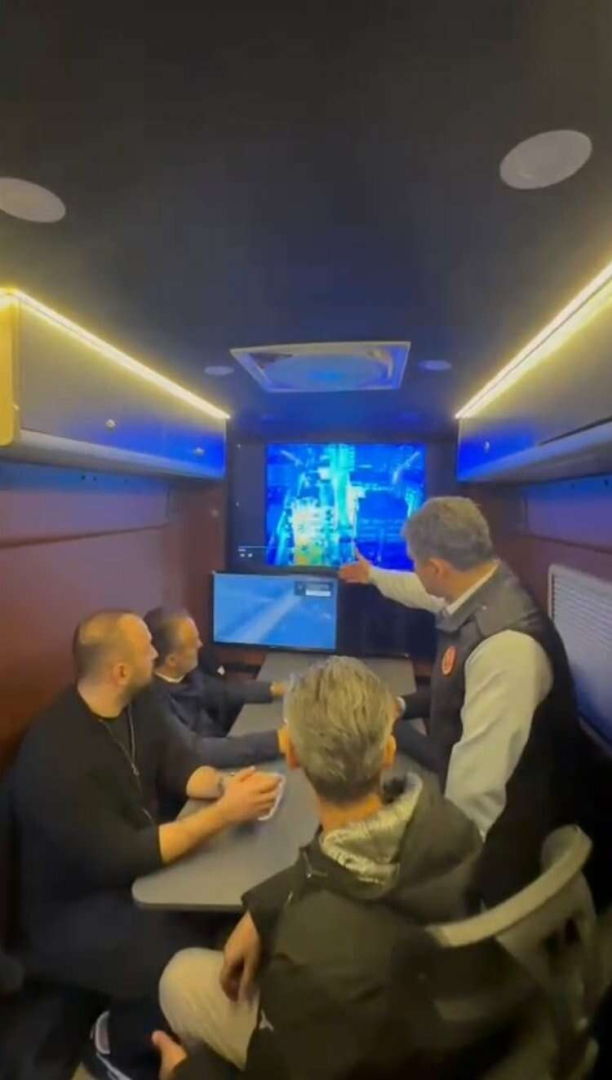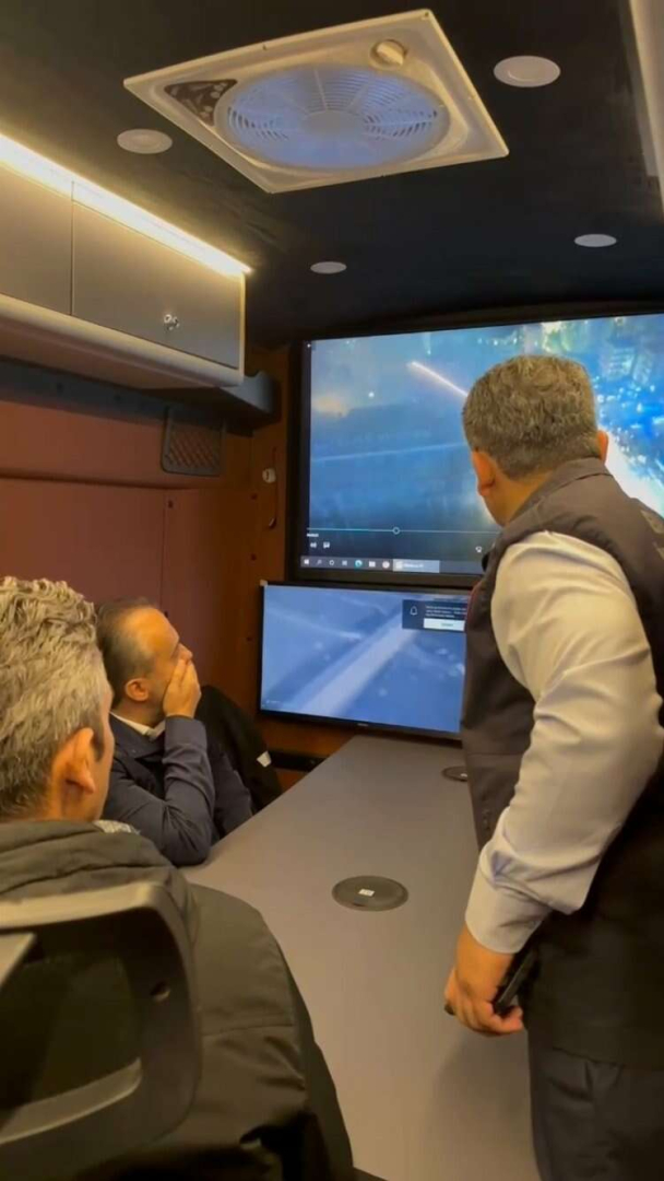 Binanın çevresinde dolaşan termal dronların kriz masasına anlık aktardığı görüntülerden binanın tamamen söndürülüp söndürülmediği kontrol edildi.