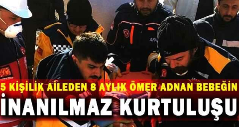 Merkez üssü Kahramanmaraş olan iki büyük depremin ardından Hatay’ın Alaattin köyünde 3 katlı bir bina çökerek, 5 kişilik aile göçük altında kaldı. 72 saatin ardından köye gelen gönüllüler, enkaz altından sesler duymaları üzerine çalışma başlattı. Uzun süren kurtarma çalışmaların ardından 8 aylık Ömer Adnan bebek enkaz altından kurtarılarak hastaneye götürüldü. Ancak devam eden çalışmaların ardından anne, baba ve bebeğin kardeşlerinin cansız bedenlerine ulaşıldı. Depremde ölen annenin 10 yıl önce kanser nedeniyle doktorların 3 ay ömür biçmesine rağmen hastalığı atlattığı öğrenilirken, 72 saat sonra enkaz altından bebeği kurtaran gönüllüler ise tekrar köye gelerek Ömer Adnan’la buluştu.