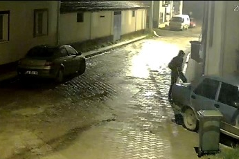 Sokağa yürüyerek giren şüpheli, park halindeki 16 ANH 999 plakalı aracın kapısını zorlayarak açtı. Araçtaki teyp ve malzemeleri alan şahıs, sokaktaki apartmanın girişine malzemeleri sakladı.