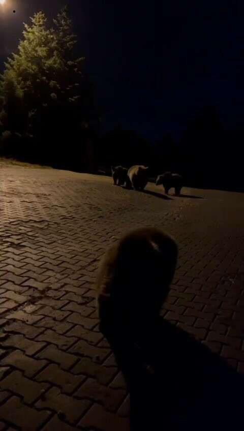 Uludağ Sarıalan'da bulunan 3 ayı ailesinin gözünü uyku tutmadı.