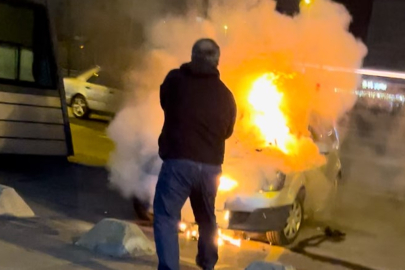 Öte yandan vatandaşların alev alev yanan otomobile yangın tüpüyle müdahale etmesi cep telefonu kameralarına yansıdı.