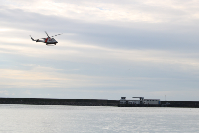 Denizden ve karadan süren çalışmalara destek veren helikopter de havadan denizi tarıyor.