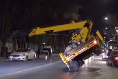 Ankara’nın Sincan ilçesinde bayrak asma çalışması yapan vinç yan yattı. Kazada can kaybı veya yaralanma yaşanmadı.