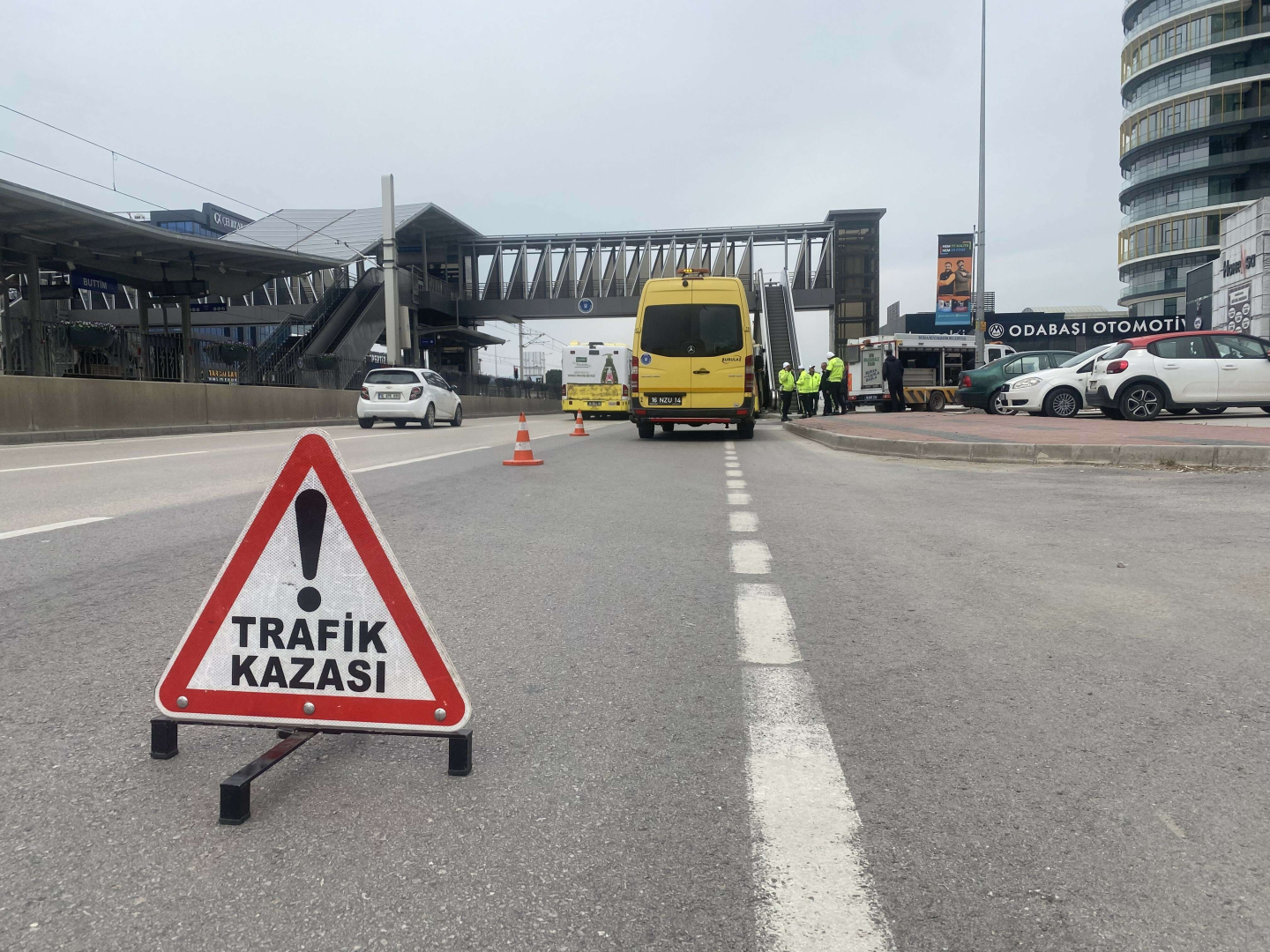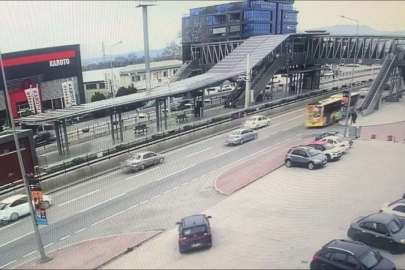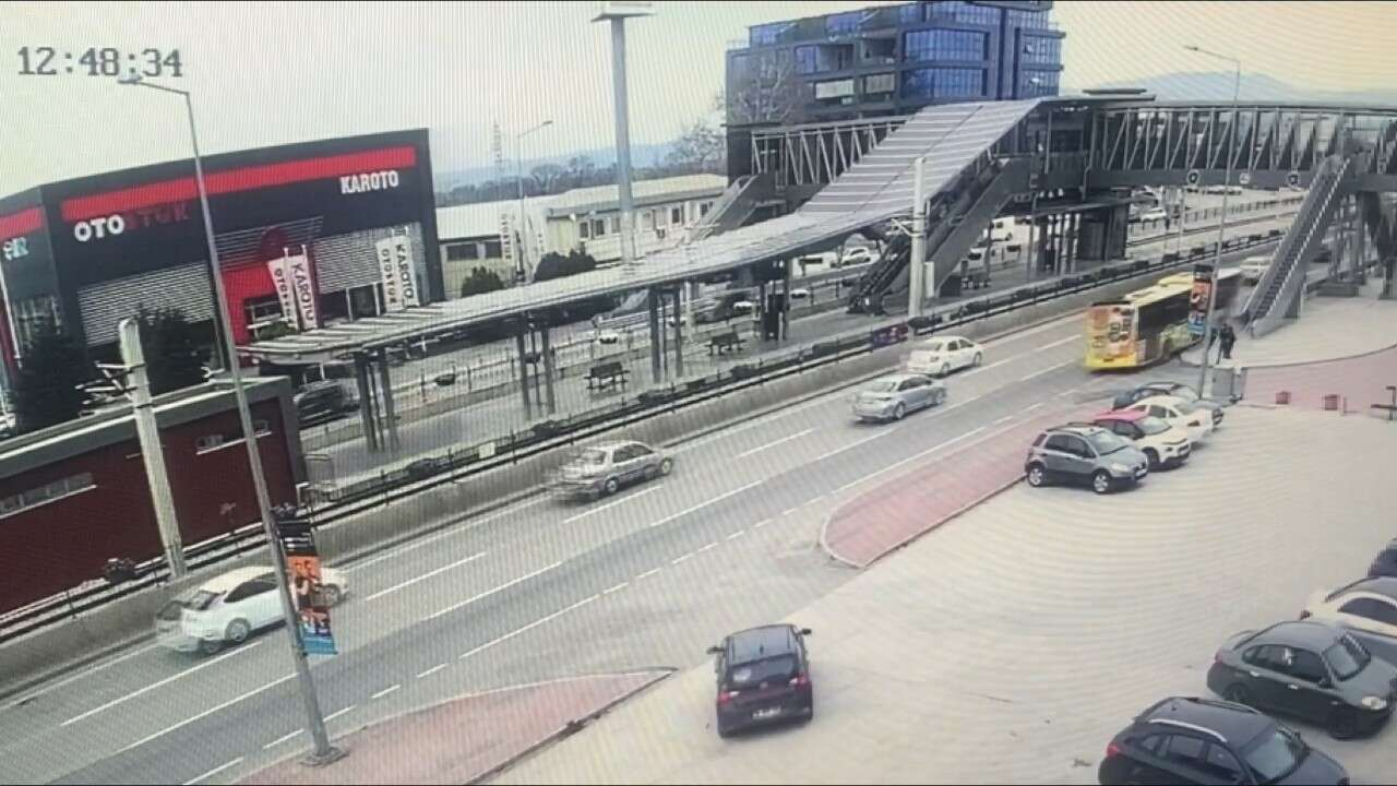 Bursa'da belediye otobüsünün bariyerlere çarpması sonucu 5 kişinin yaralandığı kaza, bir iş yerinin güvenlik kamerasına yansıdı.