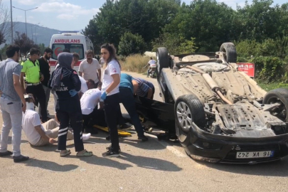 Çevre yolu üzerinde seyir halinde olan Süleyman Dursun (30) yönetimindeki 16 VK 242 plakalı otomobilin önüne aniden köpek çıkınca araç sürücüsünün kontrolünden çıktı. Savrulan otomobil takla atarak ters durdu.
