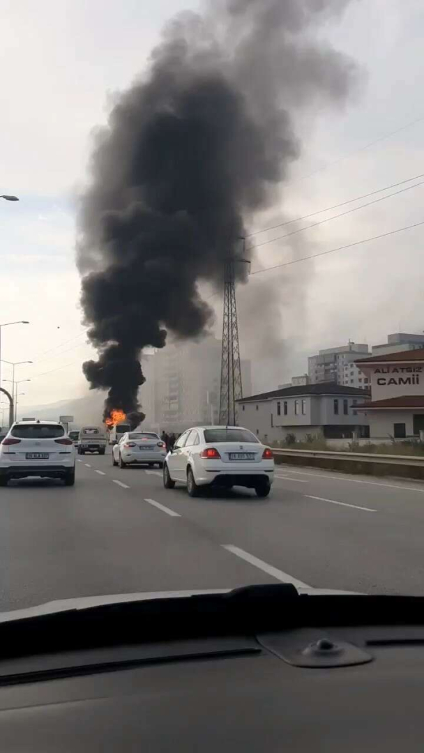 Bursa’da seyir halindeki işçi servisi alev aldı. Kısa sürede büyüyen alevler midibüsü sararken, yüklesen dumanlar birçok noktadan görüldü.