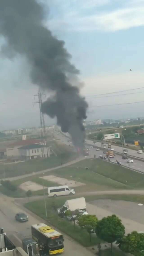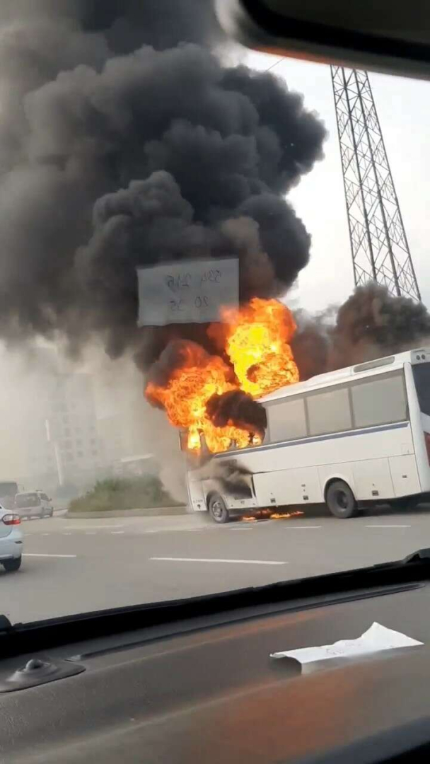 Kısa sürede büyüyen alevler otobüsün etrafını hızla sararken, durum itfaiye ekiplerine bildirildi.