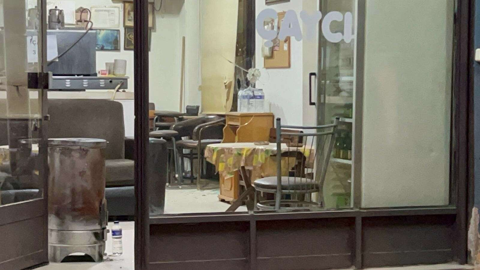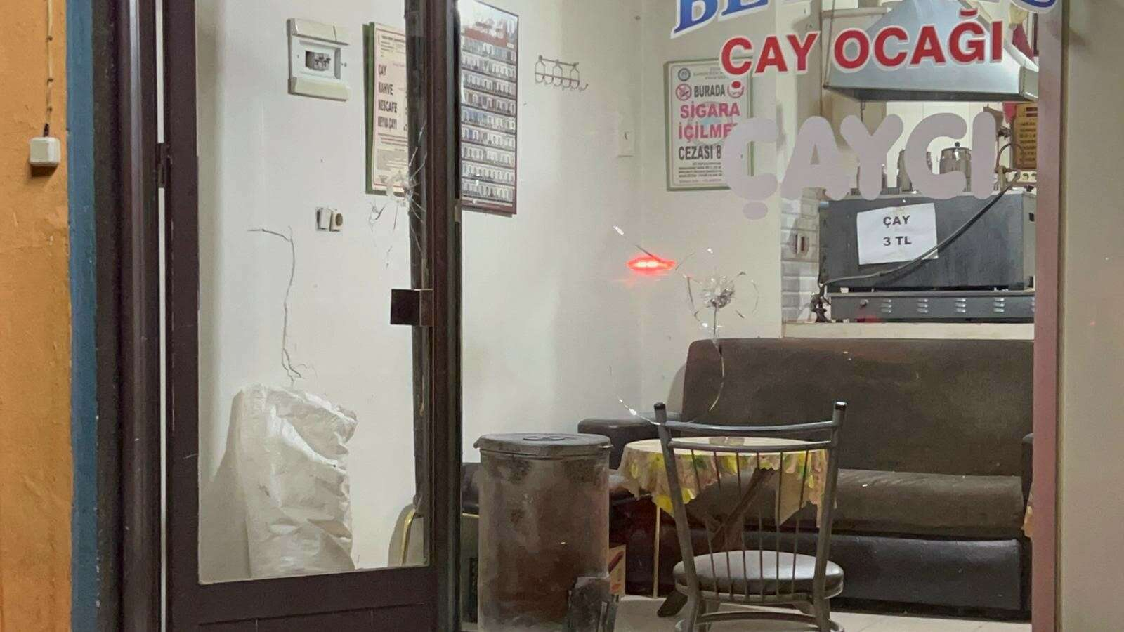 İşyerinin camlarına isabet eden mermiler sonucu, camları kırıldı.