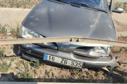 Bursa'da kontrolden çıkan otomobil refüje dalıp bariyerlere çarptı. Kazada sürücü hafif şekilde yaralandı.
