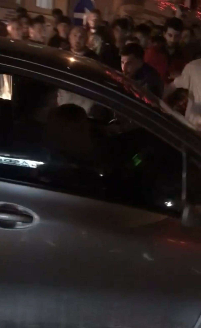 Bursa'da şampiyonluk kutlamasının içine sürücü otomobille daldı!2 kişi yaralandı