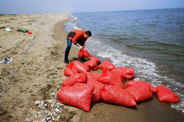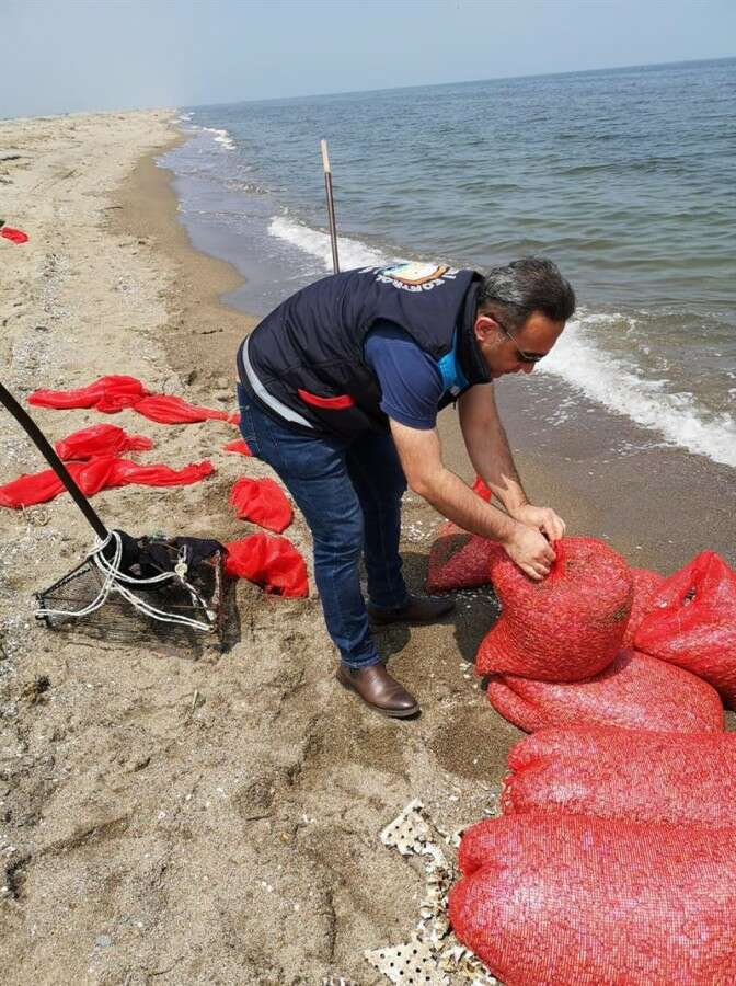 Eğerce ve Ayazma plajlarındaki kontrollerde, 20 çuvalın içinde, avlanması yasak olan yaklaşık 700 kilogram kum şırlanı ele geçirildi.
