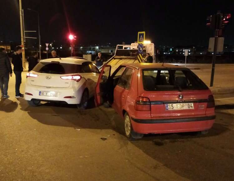 Alanyurt yolu üzerinde seyir halinde olan Davut Doğukan D.(22) yönetimindeki 35 EDP 84 plakalı otomobil, Alanyurt istikametinden gelip Akpınar Caddesine dönüş yapmakta olan Emre Y.(23) yönetimindeki 16 Y 0100 plakalı otomobil ile kafa kafaya çarpıştı.