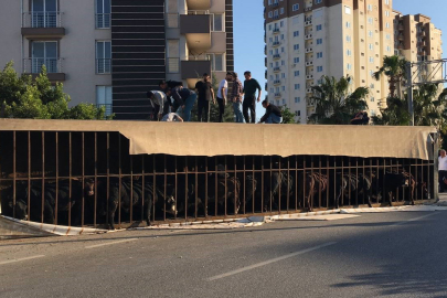 Mersin’in Erdemli ilçesinde canlı büyükbaş hayvan taşıyan tır devrildi. Kazada sürücü yaralandı, bazı hayvanlar telef oldu. Çanlı olan hayvanları kurtarmak için yoğun bir çalışma gerçekleştirildi.