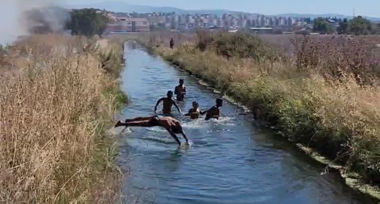 Yangınla mücadele sürerken, birkaç çocuğun su kanalına atlaması dikkat çekti. Alevlerin yükseldiği alanın hemen yakınında bulunan sulama kanalına, sıcaklığın 36 dereceyi bulması nedeniyle serinlemek için giren 6-7 çocuk yaşanan tehlikeyi hiçe saydı.