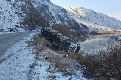 Ağrı'da meydana gelen trafik kazasında, devrilen tırın sürücüsü hayatını kaybetti.
