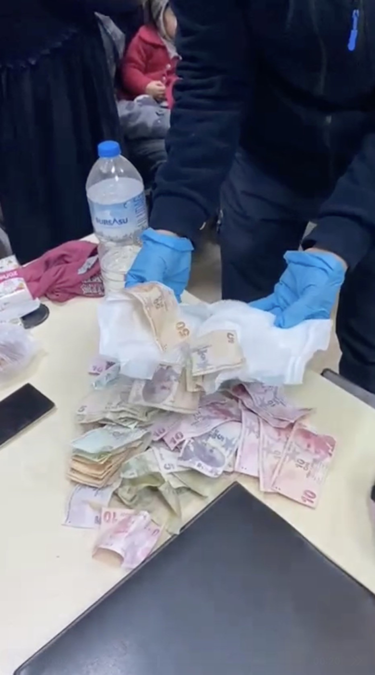 Dilencilik parasını çocuk bezine sakladılar