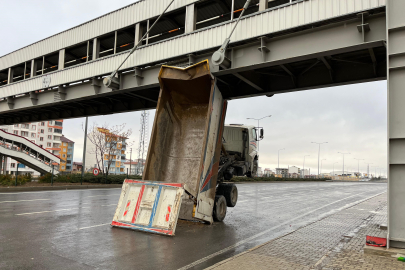 Seyir halindeyken açılan kamyon dorsesi üst geçide çarptı.