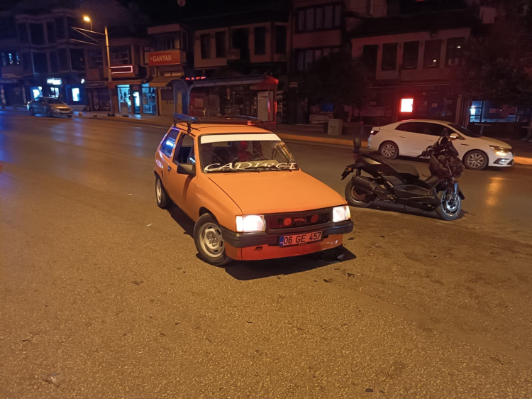 Bursa’da meydana gelen kazada drift yapan otomobile arkasından gelen motosikletli çarptı. Kazada 2 sürücü yaralanırken kaza anı güvenlik kameralarına yansıdı.