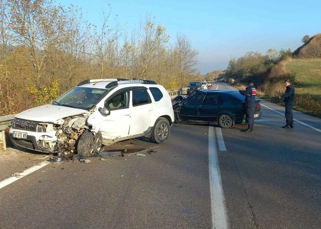 Şaban Y. yönetimindeki 16 KFG 85 plakalı cip, karşı yönden gelen sürücü Ahmet Y. yönetimindeki 16 AIZ 228 plakalı otomobil ile kafa kafaya çarpıştı.
