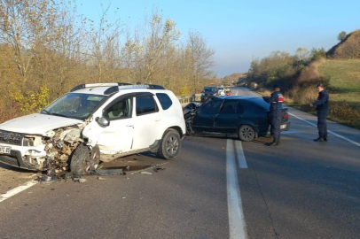 Bursa'nın İnegöl ilçesinde meydana gelen kazada 2 araç kafa kafaya çarpıştı; 3 kişi yaralandı.