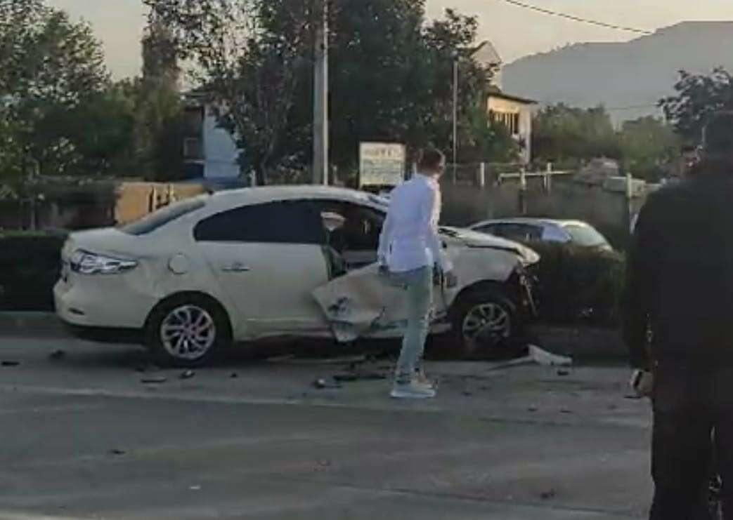 Tabelaya ve orta refüje çarpıp karşı yöne geçen araç, karşı yönden gelen sürücü İsmail A.(45) yönetimindeki 16 FE 122 plakalı minibüs ile çarpışarak durabildi. Kaza sonucu otomobilin sürücüsü ve yanındaki yolcu Oğuzhan K. yaralandı.