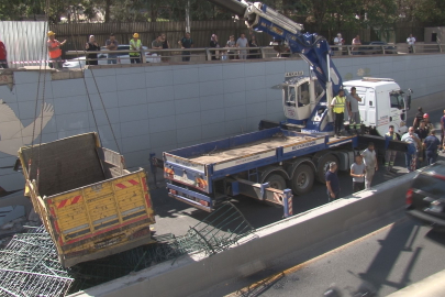 Ankara’da freni boşalan bir hafriyat kamyonu, alt geçitte seyreden hafif ticari aracın üstüne düştü.