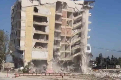 Kahramanmaraş merkezli depremlerde büyük yıkım yaşayan Hatay’da enkaz kaldırma çalışmalarında sona gelindi. Antakya ilçesi Kavaslı Mahallesi’nde ağır hasarlı 8 katlı bina, iş makinesiyle zarar verildikten sonra halatla çekilerek yıkıldı. Kontrollü olarak gerçekleşen yıkımda herhangi bir olumsuzluk yaşanmadı. Binanın yerle bir olduğu anlar ise cep telefonu kamerasıyla görüntülendi.