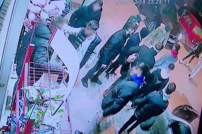 Gençlerin markete sığındığı, diğer şahısların marketi bastığı ve market sahibinin şahısları püskürtüp kavgayı sonlandırdığı anlar güvenlik kamerasına saniye saniye yansıdı.