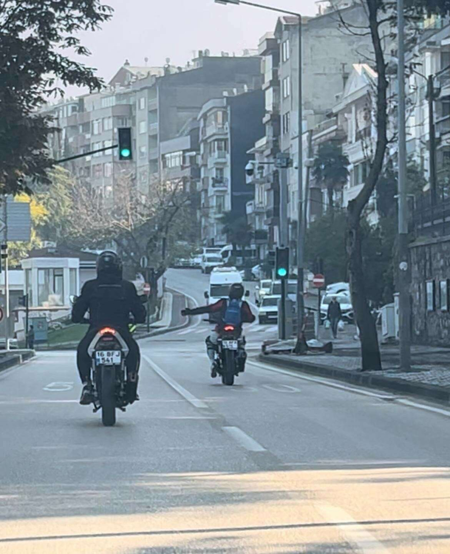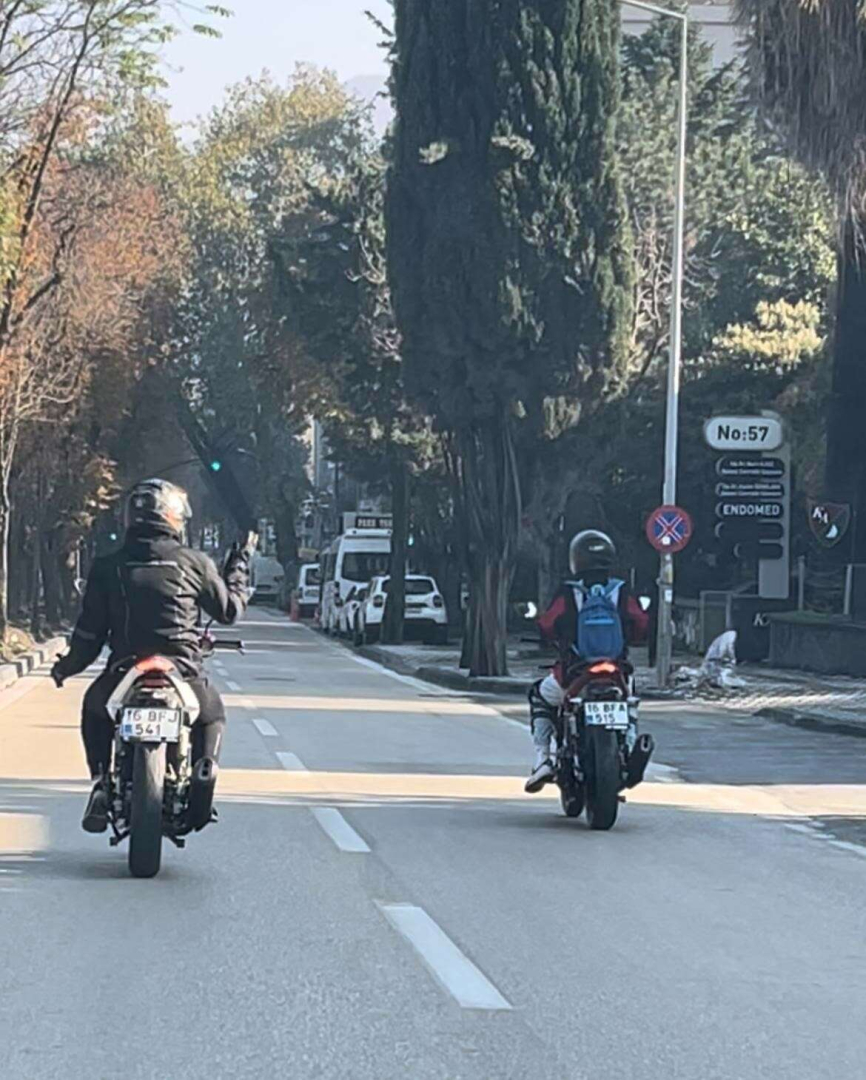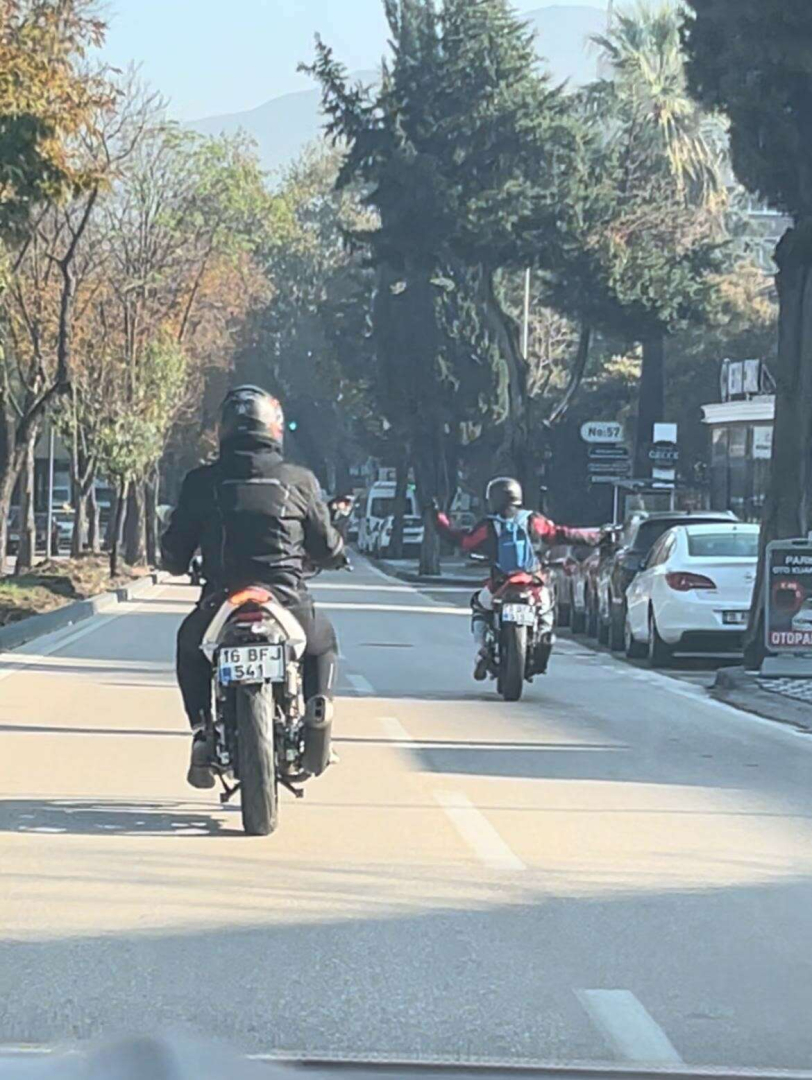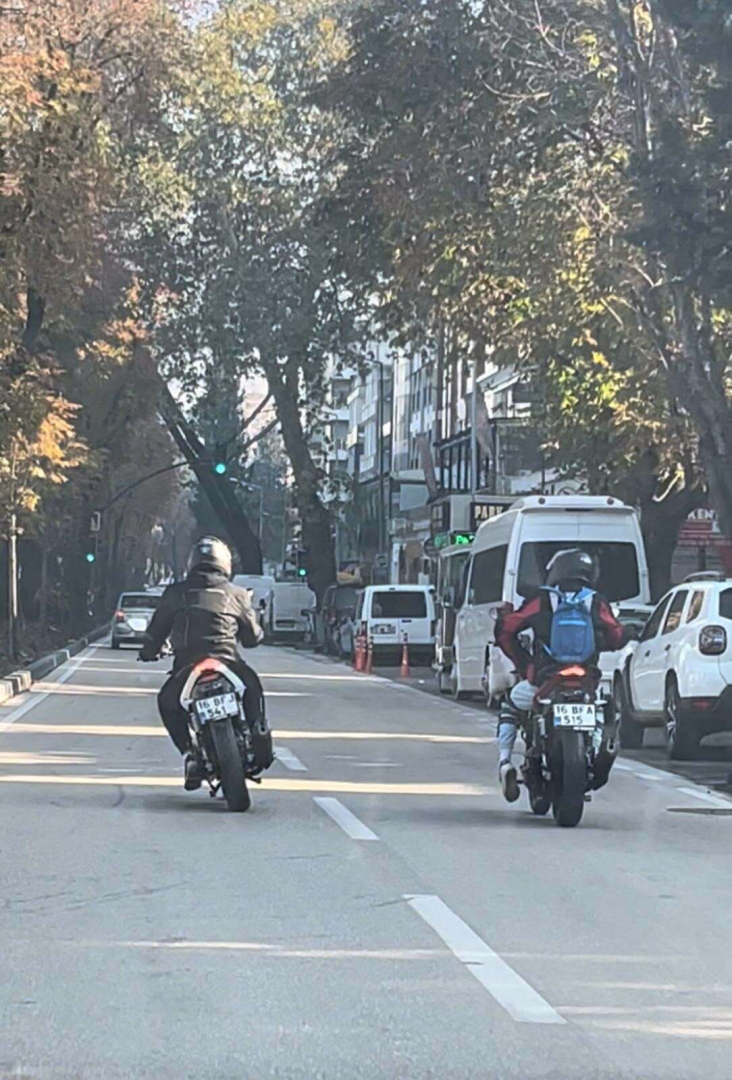 Merkez Osmangazi ilçesi Kükürtlü Caddesi üzerinde iki arkadaş motosikletleriyle trafiğe çıktı.