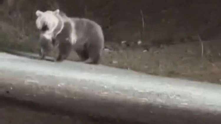Görüntülerde, köpeklerin ayıya saldırmaya çalıştığı gözüküyor. Vatandaşlar ise ayıyı korna çalarak uzaklaştırmaya çalışıyor.