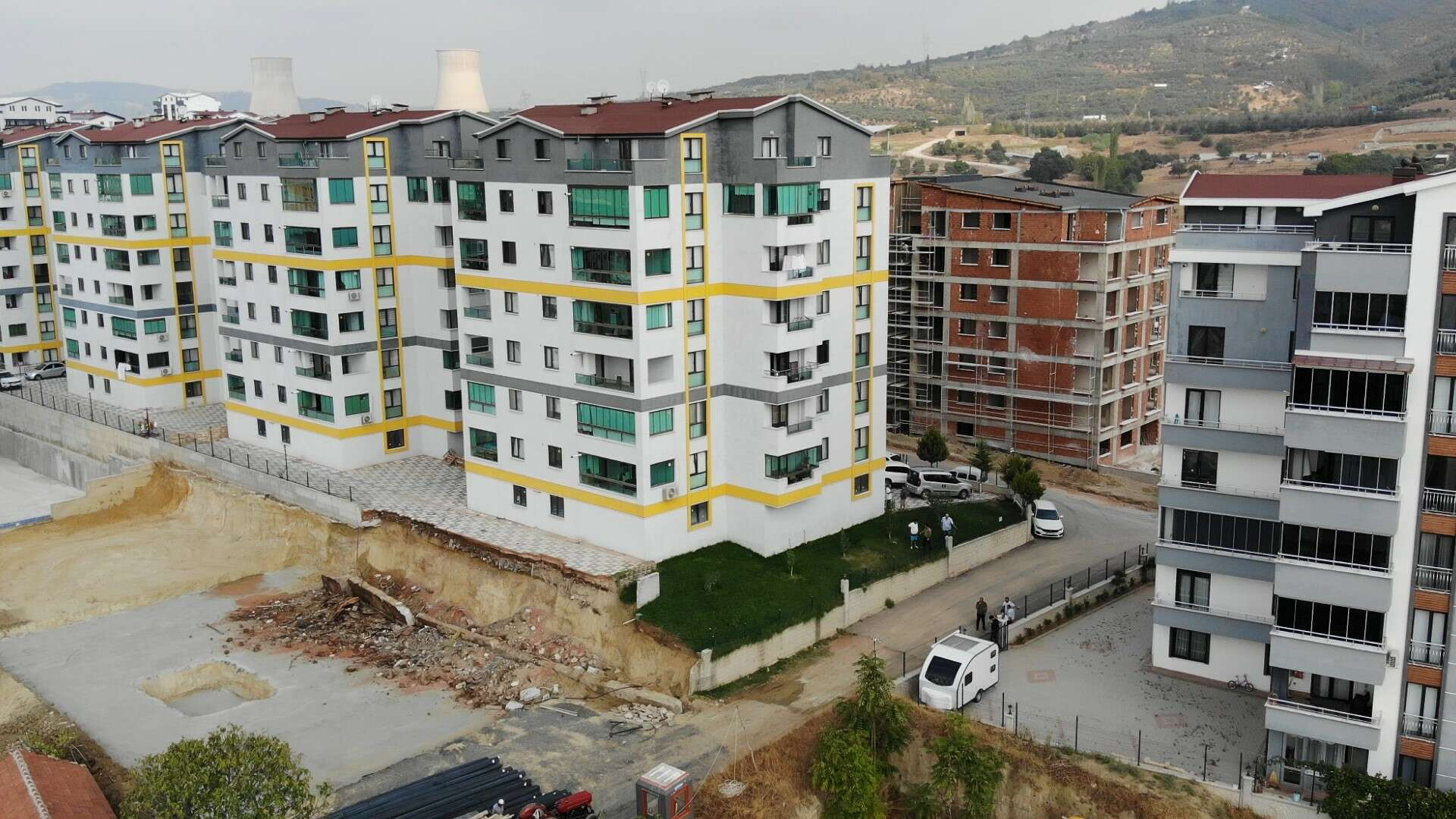 Bursa’da 4 bloktan oluşan 8 katlı bir sitenin inşaat çalışması nedeniyle istinat duvarı çöktü.