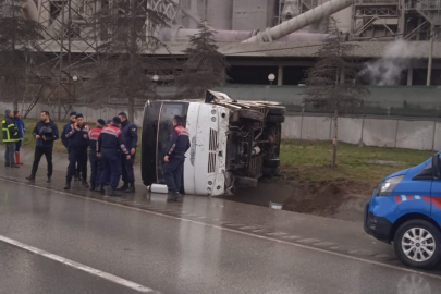 İşçi minibüsü devrildi