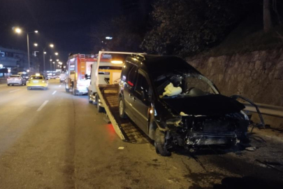 Kadıköy'de hızlı seyretmekte olan otomobil, kontrolden çıkarak önünde ilerleyen aracın arkasından çarpıp yol kenarındaki bariyere savruldu.