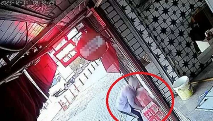 Bir süre sonra içecekler toptancı tarafından getirilerek kapının önüne bırakıldı. Kapının önüne gelen içecek hırsızı, çevreyi kontrol ettikten sonra 3 koli içeceği kucağına alarak kayıplara karıştı. O anlar saniye saniye güvenlik kamerasına yansıdı.
