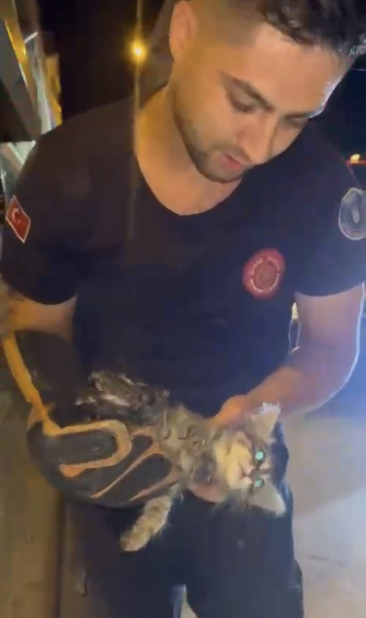 Yaklaşık yarım saat süren çalışmada itfaiye personeli, dikkatli bir şekilde kediyi ensesinden tutarak bulunduğu yerden çıkardı. Kurtarma anında hem kedinin hem de itfaiyecilerin zor anlar yaşadığı görüldü. Borudan çıkarılan kedi, itfaiye personelinin kucağında sakinleştirildi ve bir süre sevildi. Çevrede toplanan vatandaşlar, ekiplerin özverili çalışmasını alkışlarla takdir etti.