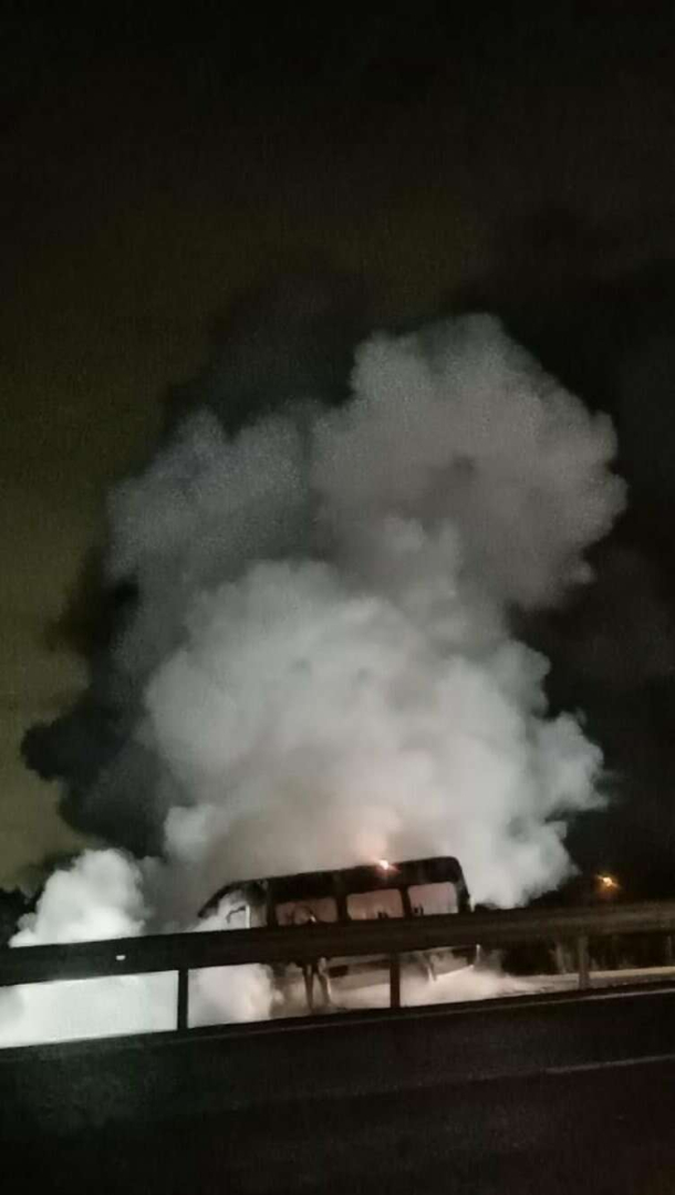 Dürdane rampasında seyir halinde olan servis minibüsünün şoförü, araçtan dumanlar çıktığını görünce yol kenarına park etti. Dumanlar bir süre sonra yerini alevlere bıraktı. Yoldan geçenlerin ihbarı üzerine olay yerine itfaiye, sağlık ve jandarma ekibi sevk edildi.