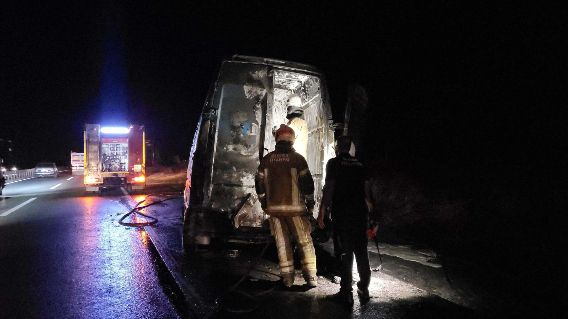 Bursa’da motor kısmından çıkan yangın kargo aracını kullanılamaz hale getirdi.
