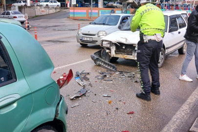 Önündeki araca çarpmamak için yavaşlayan otomobile arkadan gelen otomobil çarptı.