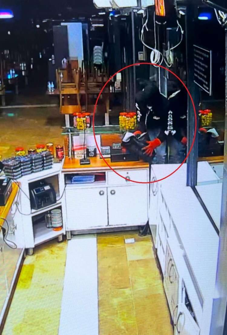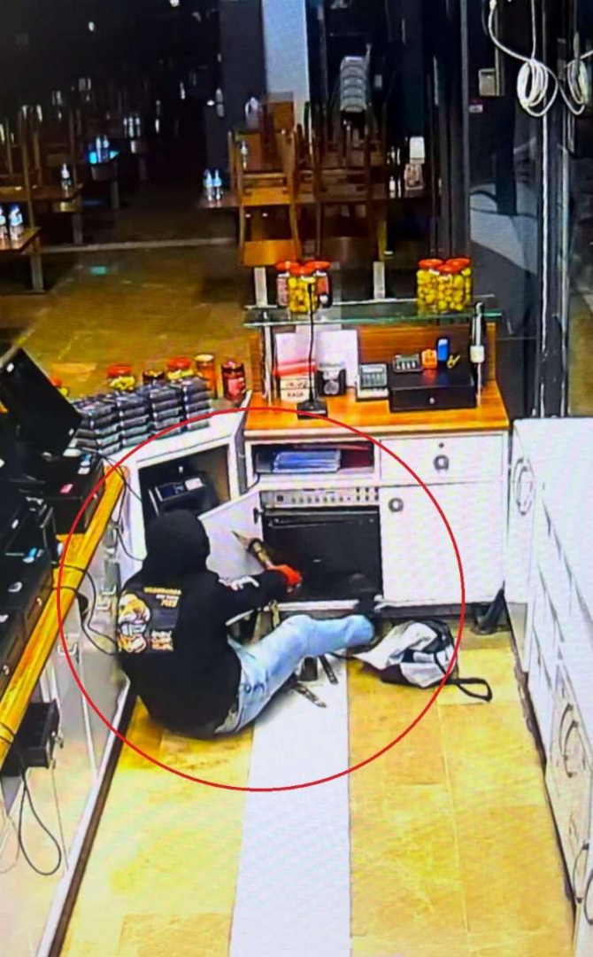 Camdan atlayarak içeri giren şüpheli, yanında getirdiği çapayla kasayı açmak için dakikalarca uğraştı. Düşe kalka kasayı açmayı başaran şüpheli aldığı paralarla kayıplara karışırken, o anlar güvenlik kamerasına anbean yansıdı. Bu esnada kız arkadaşının da dans ettiği görüntüler güvenlik kamerasına yansıdı.
