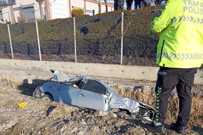 Kontrolden çıkan otomobil altyapı için açılan çukura yuvarlandı
