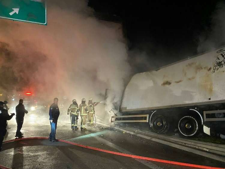Çarpmanın etkisiyle sürücü Ömer Faruk Erkoyuncu ve yanında bulunan Murat Kalbayır yola uçtu. Kamyonun yatak kısmında bulunan Selahattin Kanay ve Erkin Şeydanur ise alev alan kamyonun içerisinde sıkıştı. Kazayı gören diğer sürücülerin ihbarı üzerine olay yerine çok sayıda itfaiye, polis ve sağlık ekipleri sevk edildi.