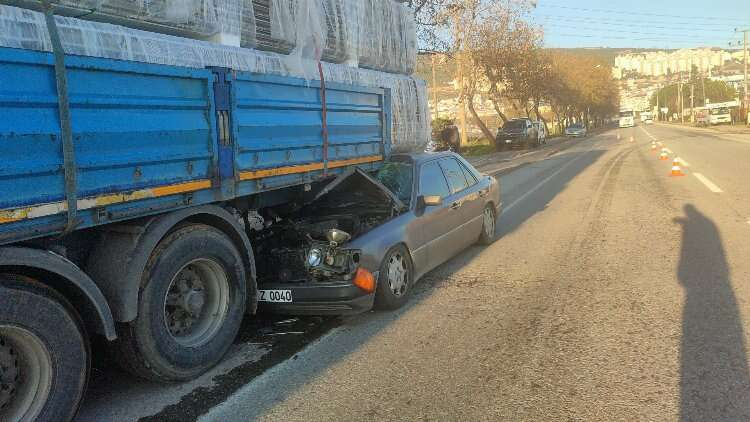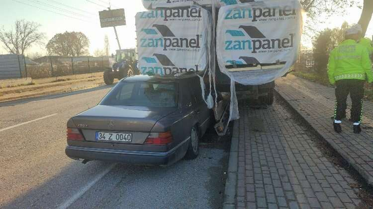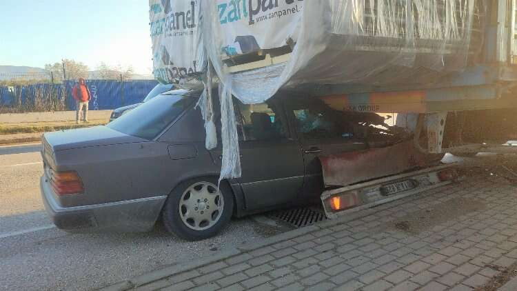 Tır altında sıkışan otomobil hurdaya dönerken Ahmet Öz yaralı olarak araçtan çıkarılarak hastaneye kaldırıldı.
