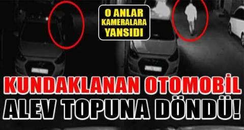 Şüpheli olay yerinden kaçarken, güvenlik kamerası ise bu anları saniye saniye kaydetti. Polis ekipleri araç kundaklayıp kaçan şüpheliyi yakalamak için çalışma başlattı.
