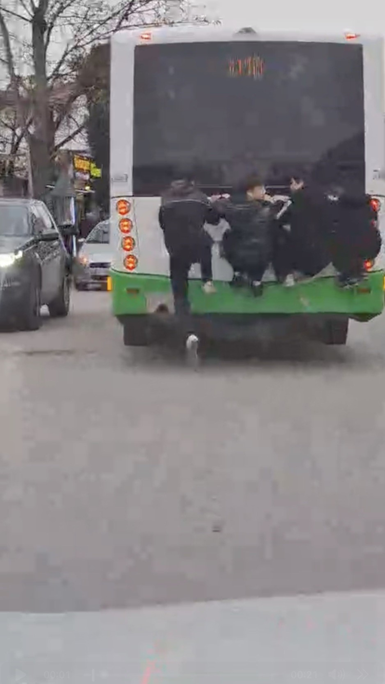 Edinilen bilgiye göre, Millet Mahallesi'nde özel halk otobüsünün arkasına asılan öğrenciler, trafikte ilerleyen otobüsün arasında yolculuk yaptı. Otobüs şoförünün durumdan haberdar olmadığı öğrenilirken, öğrencilerin bu davranışı gören vatandaşlar büyük panik yaşadı.
