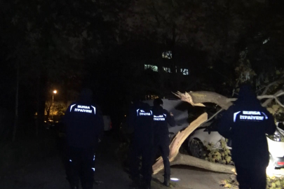 İhbar üzerine olay yerine itfaiye ve polis ekipleri sevk edildi. İtfaiye ekipleri, araçların üzerine düşen ağaç ve elektrik direğini kaldırdı.
