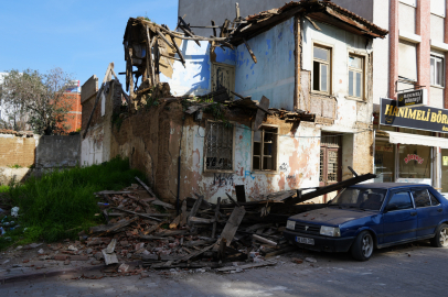Balıkesir’in Edremit ilçesinde metruk bir bina park halindeki otomobilin üzerine çöktü.