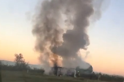 Mevsimlik işçi servis aracı alev alev yandı! Dumanlar yükseldi