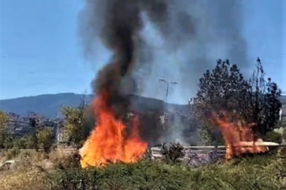 Ekiplerin hızlı müdahalesiyle yangın büyümeden kontrol altına alınıp söndürülürken, alev alev yanan alan cep telefonu kamerası ile görüntülendi.
