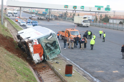 Şanlıurfa’da otobüsün tırla çarpıştıktan sonra devrildiği kazada 10 kişi yaralandı.