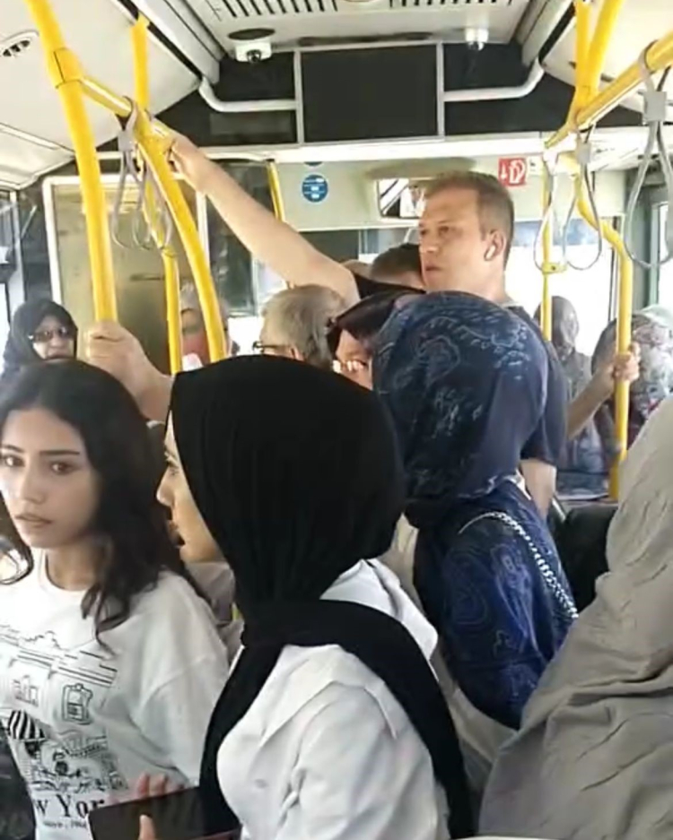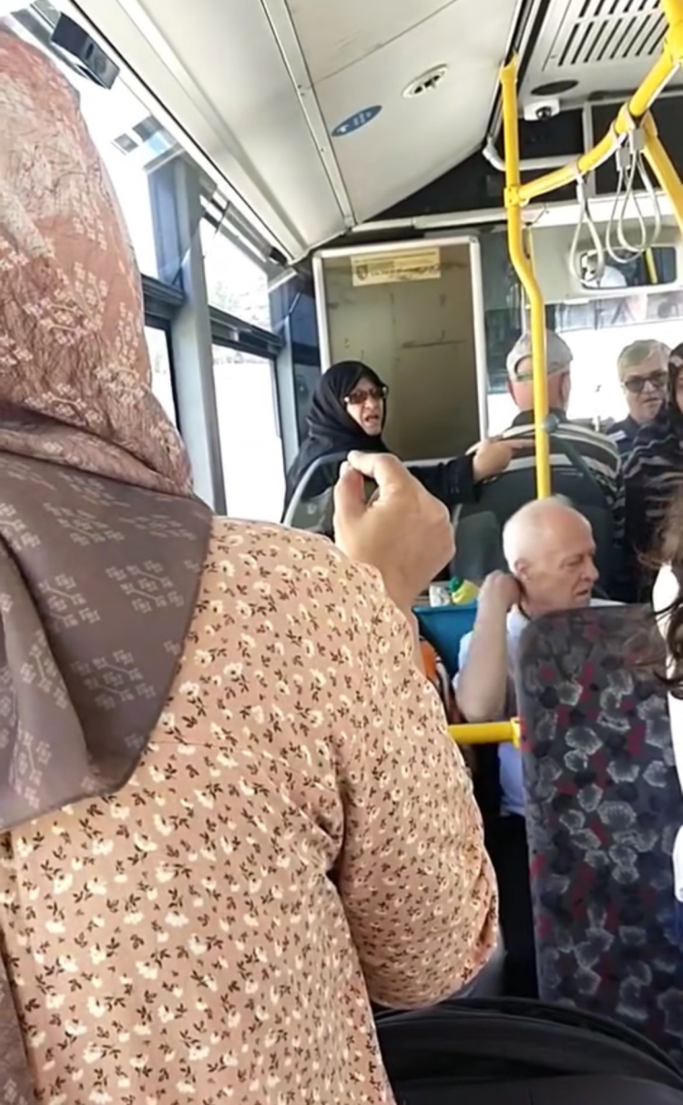 Yolcular, engelli rampasını açmak istediklerinde şoför yine yardım etmeyince, bir kadın yolcu rampayı kendi çabasıyla açmaya çalıştı. Ancak rampa elinden kayarak yere düştü. Bu esnada sinirlenen şoför, "Babanın malı mı geri zekâlı, nasıl düşürüyorsun onu?" diyerek kadına hakarette bulundu. Kadının "Elim ameliyatlı, elimden kaydı" demesine rağmen, bağırmayı sürdüren şoför bu kez otobüsteki diğer yolculara da yüksek sesle hakaretler yağdırdı.
